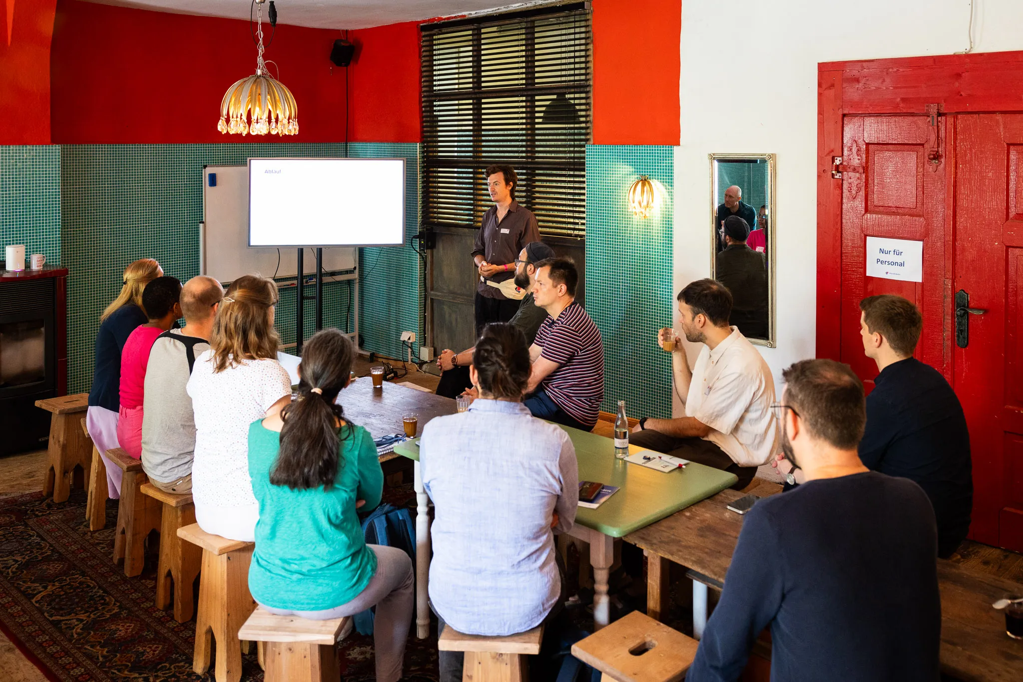 In einer anschließenden interaktiven Session der „The New Hanse“ Projekt-Gruppe präsentierten wir als ODIS in einem Impulsvortrag unsere Erfahrungen im Bereich Datenveröffentlichung und aktuelle Projekte aus Berlin. Darauf folgend kamen die Berliner und Hamburger Akteur:innen an Thementischen zusammen, um den Austausch weiter zu vertiefen, bevor nicht viel später mit Musik und Drinks schließlich das Abendprogramm eingeleitet wurde.